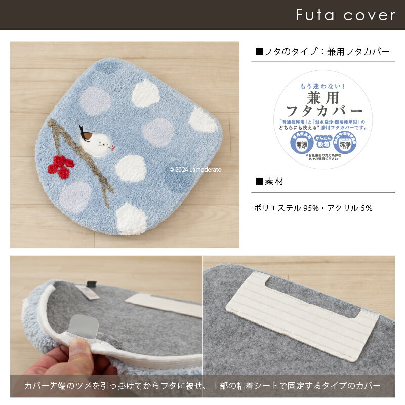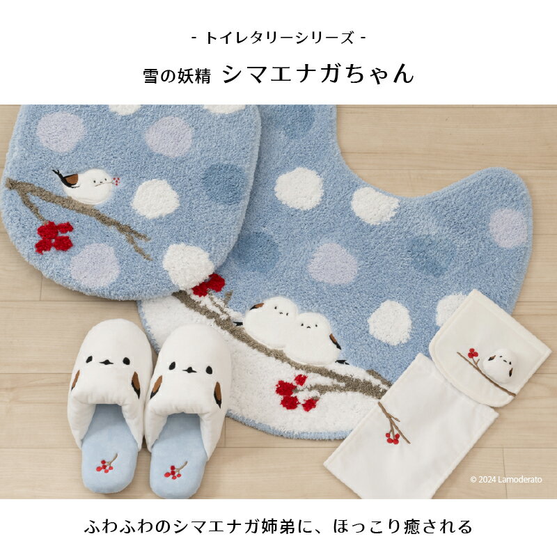 兼用フタカバー『SDS シマエナガちゃん』[ トイレカバー ふた 蓋 可愛い 鳥 ふわふわ ] ブルー グレー 24AW