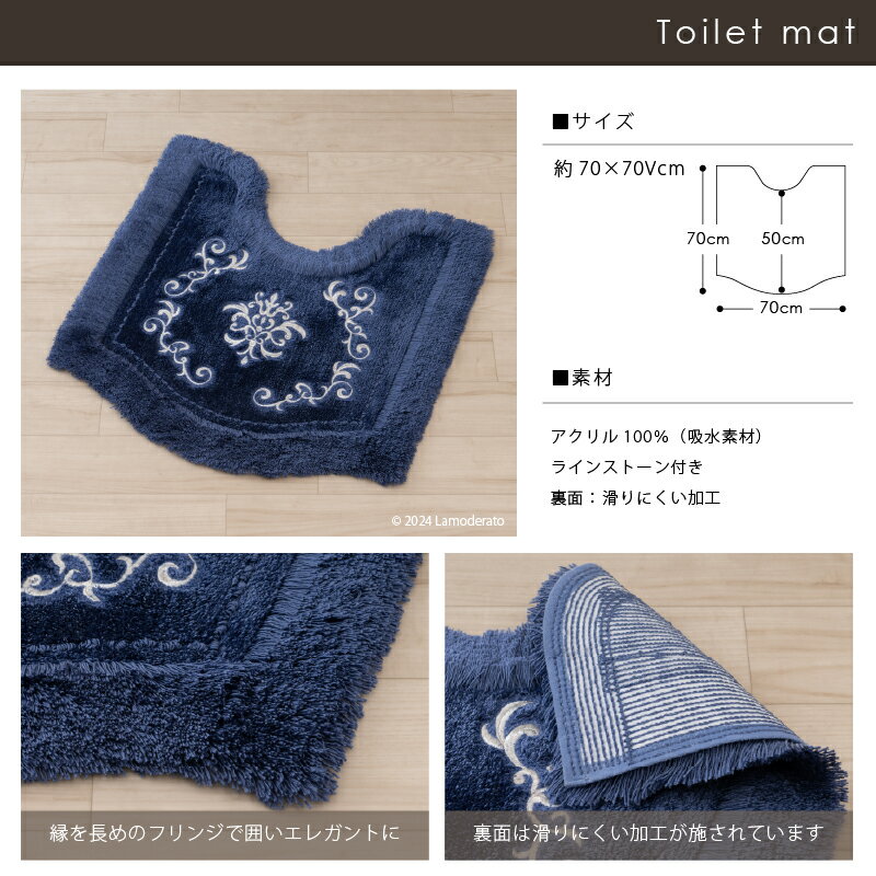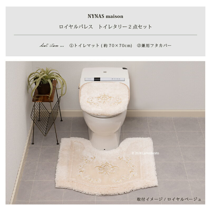 トイレ 2点セット『NYNAS ロイヤルパレス』(トイレマット 約70×70cm 兼用フタカバー ) [ ニーナス トイレマット セット 高級 上質 高品質 上品 おしゃれ トイレセット ] ベージュ ネイビー ブルー 24AW