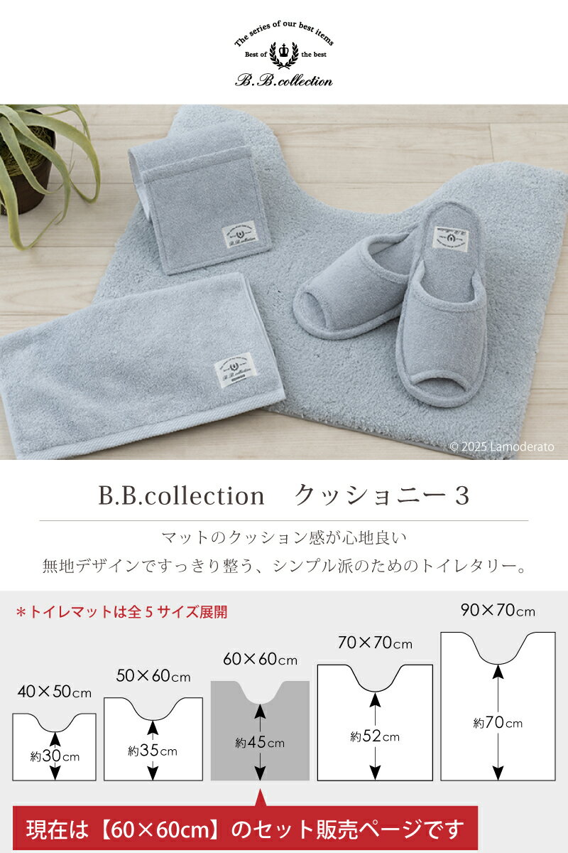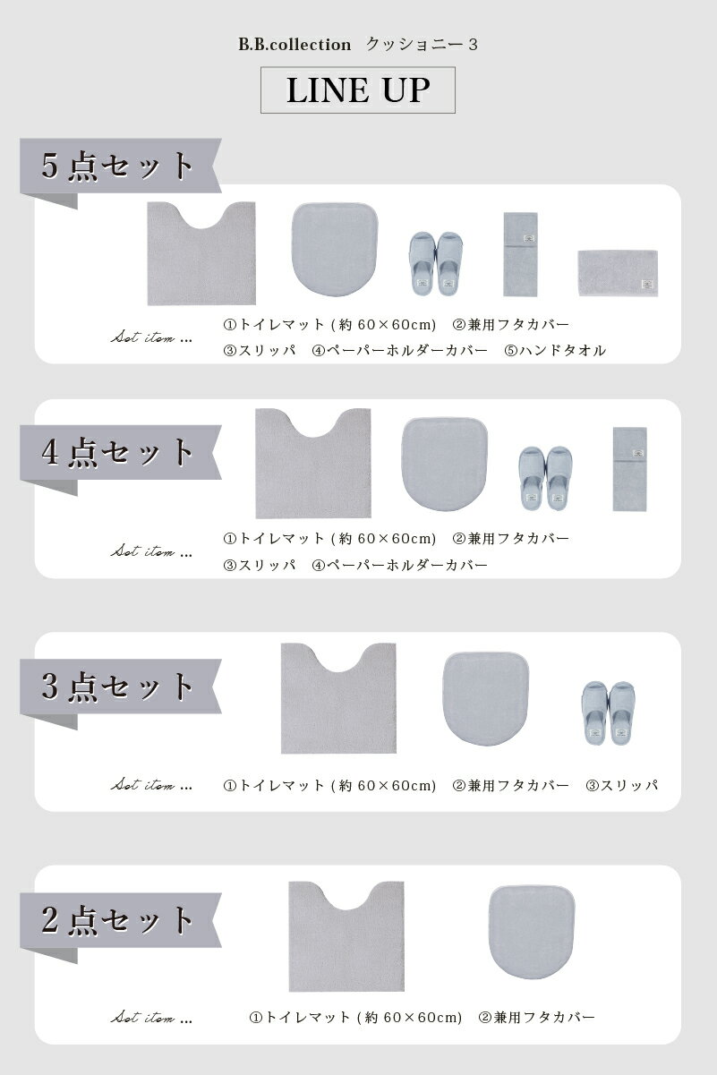 トイレマット セット『クッショニーIII』【M】約60×60cm 2点 3点 4点 5点 [ トイレカバー セット 無地 シンプル おしゃれ トイレ マット 滑り止め トイレマット 兼用フタカバー スリッパ ホルダーカバー タオル ] グレー アイボリー ピンク 25SS
