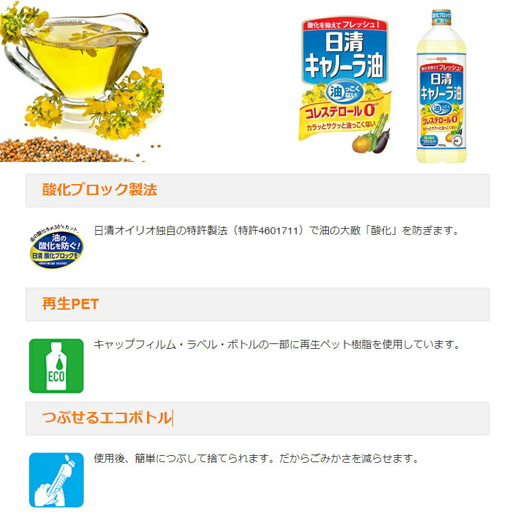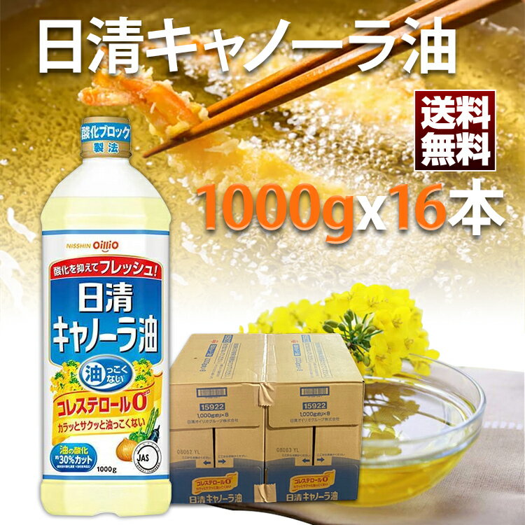 【あす楽】 日清 オイリオ キャノーラ油 1000gx16本「合計2BOX」 /お得なまとめ買い/1BOX/油っこくない/食用油/oillio/天ぷら/揚げ物/油/エコボトル/家庭用/業務用/調味料/コレステロール0/日本製「ポイント2倍」