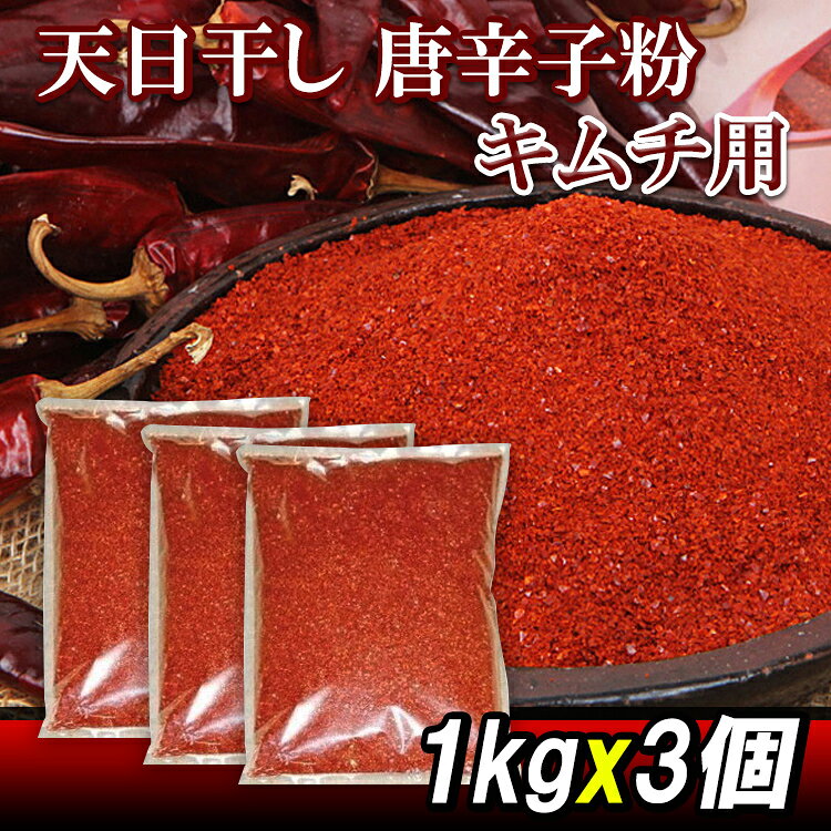 【 天日干し 唐辛子粉 キムチ用 甘口1kgx3パック】中国産 ★ 粗挽き 無地タイプ ★キムチやキムチチゲを作るに欠かせない 韓国調味料 【韓国食品・韓国料理・韓国食材・おかず】【韓国お土産・輸入食品・非常食・激安(04404x3)】 ★★