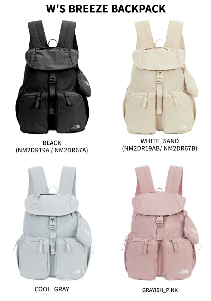 商品情報注意事項◆◇検品について◇◆お客様の商品到着後、丁寧に検品をさせて頂きます。その為お品物は検品の為一度開封をいたします。プレゼント等で開封等問題がある方は、ご連絡ください。検品時に不良個所等があった場合、発送が遅延する場合もございますが、あらかじめご了承ください。◆◇返品について◇◆・海外配送の為、サイズ交換・お色交換などの返品や交換は行っておりません。サイズは十分にお確かめの上、ご購入をお願いいたします。・海外製品は日本のものに比べて作りが粗い場合がございます。糸の始末が悪い、多少のキズがある、汚れがある、シミがある、色むらがある、イメージと違う等、返品対象となりませんのでご理解お願いいたします。商品に関するご質問・ご不明な点がございましたら、お気軽にご質問下さいませ。◆◇買い付け地について◇◆・韓国のファッションブランドから買い付けを行っております。デザインも製造も韓国の場合と、デザイン監修は韓国で製造は中国の場合もございます。【注意事項】・当店でご購入された商品は、原則として、「個人輸入」としての取り扱いになり、全て韓国ソウルからお客様のもとへ直送されます。・個人輸入される商品は、全てご注文者自身の「個人使用・個人消費」が前提となりますので、ご注文された商品を第三者へ譲渡・転売することは法律で禁止されております。・通関時に関税・輸入消費税が課税される可能性があります。課税額はご注文時には確定しておらず、通関時に確定しますので、商品の受け取り時に着払いでお支払いください。詳細はこちらご確認下さい。・人気商品の為、ご注文後に在庫切れとなっている場合もございます。ご注文前に在庫確認のお問い合わせをいただけますようお願いします。・正確なサイズは【サイズ詳細】をぜひ!ご覧ください。屋外(屋内)撮影性質上、実際の商品と色の差がある場合があります。*色がある場合、モニターの発色の具合によって実際のものと色が異なる場合があります。【正規品】 THE NORTH FACE リュック W'S BREEZE BACKPACK NM2DR19 NM2DR67 ☆ レディース ロゴ バックパック 通勤 通学 バッグ 鞄 ナイロン 光沢感 ノースフェイス 【【関税込/送料無料】 デイリー スポーツ ストリング ファスナーポケット 両サイドポケット 人気 韓国 ブラック ホワイトサンド グレー ピンク 世界的に大人気なアウトドアブランド【THE NORTH FACE】より、25SSW'S BREEZE BACKPACK のご紹介です!!前面にジッパーアウトポケットがあって、簡単に分離収納が可能なリュック。両サイドにもポケットがあります。BLACK(NM2DR19A、NM2DR67A)WHITE_SAND(NM2DR19B、NM2DR67B)COOL_GRAY(NM2DR19C)GRAYISH_PINK(NM2DR19D)※BLACKのお色は、NM2DR19AとNM2DR67Aがランダムで発送されます。品番は異なりますが同一商品です。※WHITE_SANDのお色は、NM2DR19BとNM2DR67Bがランダムで発送されます。品番は異なりますが同一商品です。 5