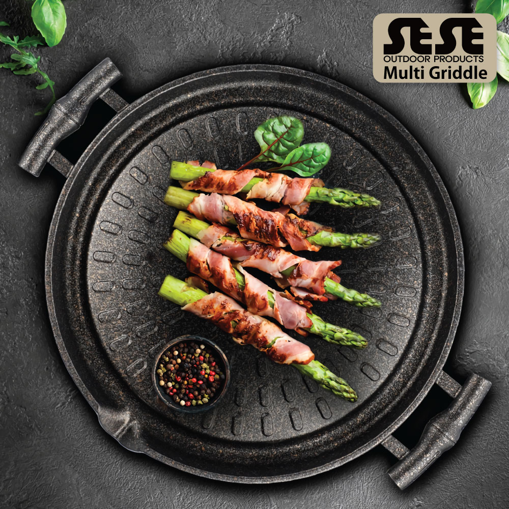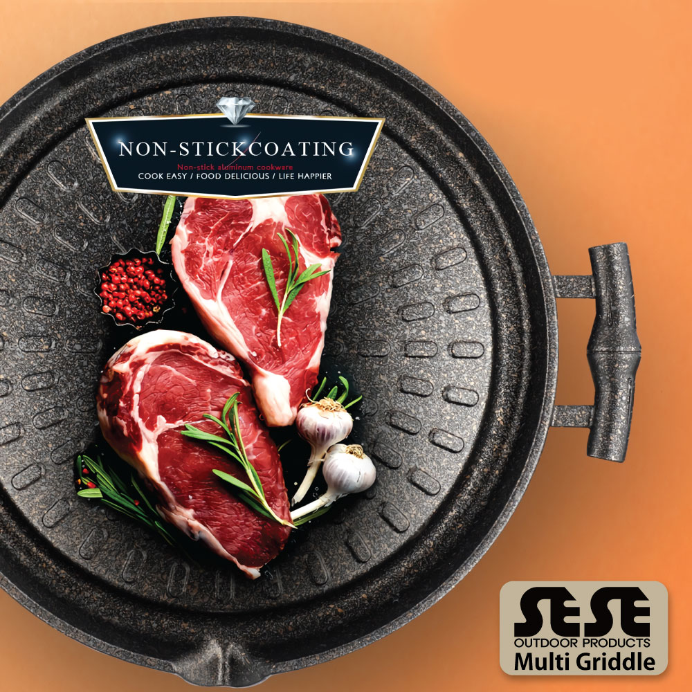 最近"万能アウトドア調理器具’"としてSNSで話題沸騰中の「SESE マルチグリドルパンシリーズ」みなさんもぜひグリドル料理に挑戦してみてくださいね。 フッ素樹脂コーティングされている焦げつきにく調理しやすい上後片付けも簡単! 軽量で持ち運びに便利!さらにバック付き♪ アウトドア?キャンプ?バーベキューに最高 高品質な製品を安定して製造する韓国キッチン用品のトップブランド工場で生産しております。 ●材質:アルミニウムダイカスト フッ素樹脂コーティング ●サイズ:約30x30cm ●重量:約 1.5 Kg ●原産国名:韓国 ●取扱上の注意 1. 最初に使用する際に弱火で食用油を満遍なくフライパンになじませるとコーティング膜を形成し、より長く使用できます。 2. 空のままフライパンを長く加熱するとシミが生じ、寿命の短縮の原因になります。 3. 製品の損傷を防止するため、塩分の多い食材を長い間保管しないでください。 4. 使用後はきれいに洗浄し、水気を拭き取った後は乾燥した状態で保管してください。 5. 電子レンジやオーブンに使用しないでください。 6. 鉄たわしなど鋭利なツールを使用すると、コーティングがはがれる恐れがあります。 7. コンロサイズよりグリドルパンが大きい形状の場合、熱気がこもりカセットガスが熱くなる場合がございますので、 コンロとグリドルパンのサイズを確認しご使用ください。