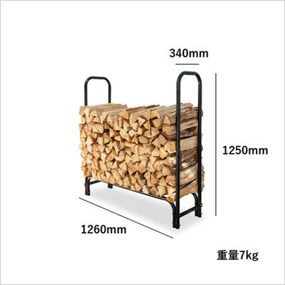 限られたスペースにオススメで、横幅が大きいモデルの約半分とコンパクトサイズの鉄製ログラックですが、最大30束の薪を収納できます。 家内の倉庫など限られたスペースへの設置にオススメです。 商品名 FIRESIDE ファイヤーサイド ログラック(小) 型番15127 材質 鉄(黒塗装仕上げ) サイズ 高さ1250mm 横幅1260mm 奥行340mm 重量 7kg メーカー FIRESIDE 生産地 中国製 お届けについて メーカーより直送いたします。※代引き不可 送料について 沖縄・離島への発送は別途送料を頂戴いたします。限られたスペースにオススメ 横幅が大きいモデルの約半分とコンパクトサイズの鉄製ログラックですが、最大30束の薪を収納できます。 家内の倉庫など限られたスペースへの設置にオススメです。 1.簡単に組み立てができる シンプルで丈夫な構造なので、説明書に沿ってボルト止めをしめていくだけで女性でも簡単に組立ができます。 2.約300kgの重量にも耐える 直径約2cm鉄製フレームは、薪30束(約300kg)の重量にも耐えることができます。 3.薪の乾燥に適した高さ ボトムフレームの高さが20cmあるので空気の通りがよく、地面からの湿気を防ぎ、薪の乾燥に適しています。 4.薪割りの作業効率が上がる デッキ、ポーチ、ドア横、窓下など、薪運びの導線上に手軽にセットできるので、薪割りの作業効率が上がります 5.破損しにくいキャップに変更 今までのモデルは脚に取り付けられているキャップがログラック本体と一体型になっており破損しやすかったですが、破損しにくい着脱式のキャップに変更改善されました。 購入前の確認事項 ●日時指定につきまして 当商品はメーカー直送のため日曜・祝日の配達を承る事ができません。 お時間の指定も午前か午後のみとなります。 ●ご注意 組み立て用の工具は付属していません。 長さ34cm以上の薪でご使用頂けます。 予めご了承くださいませ。 ●ご返品について 商品の初期不良を除き、外箱を開封されたものに関しましてはご交換、ご返品は承り致しかねます。 予めご確認の上お買い求めくださいませ。 ●商品の配送について 北海道・沖縄・離島への配送につきましては別途送料を頂戴しております。予めご了承ください。 全体の形状と重量 サイズ:高さ1250mm 横幅1260mm 奥行340mm 重量:7kg