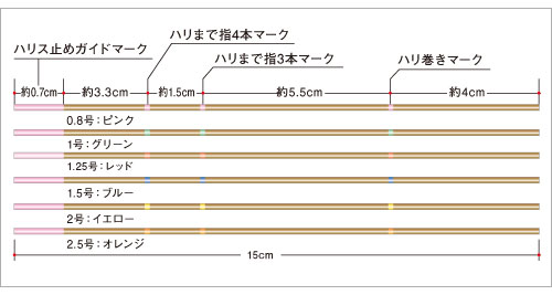 張りとコシのフロロ! 鮎ハリスフロロ こんな時には「フロロ」がおススメ。 ハリスの反射が気になる時。 ハリスの浮き上がりが気になる時 あと少しの硬さが欲しいとき。 ハリ巻きやイカリのセット時に便利なポイントマーキング付き。 (カラー:ブラウン:便利な4箇所マーク入り/15cm×100本入)