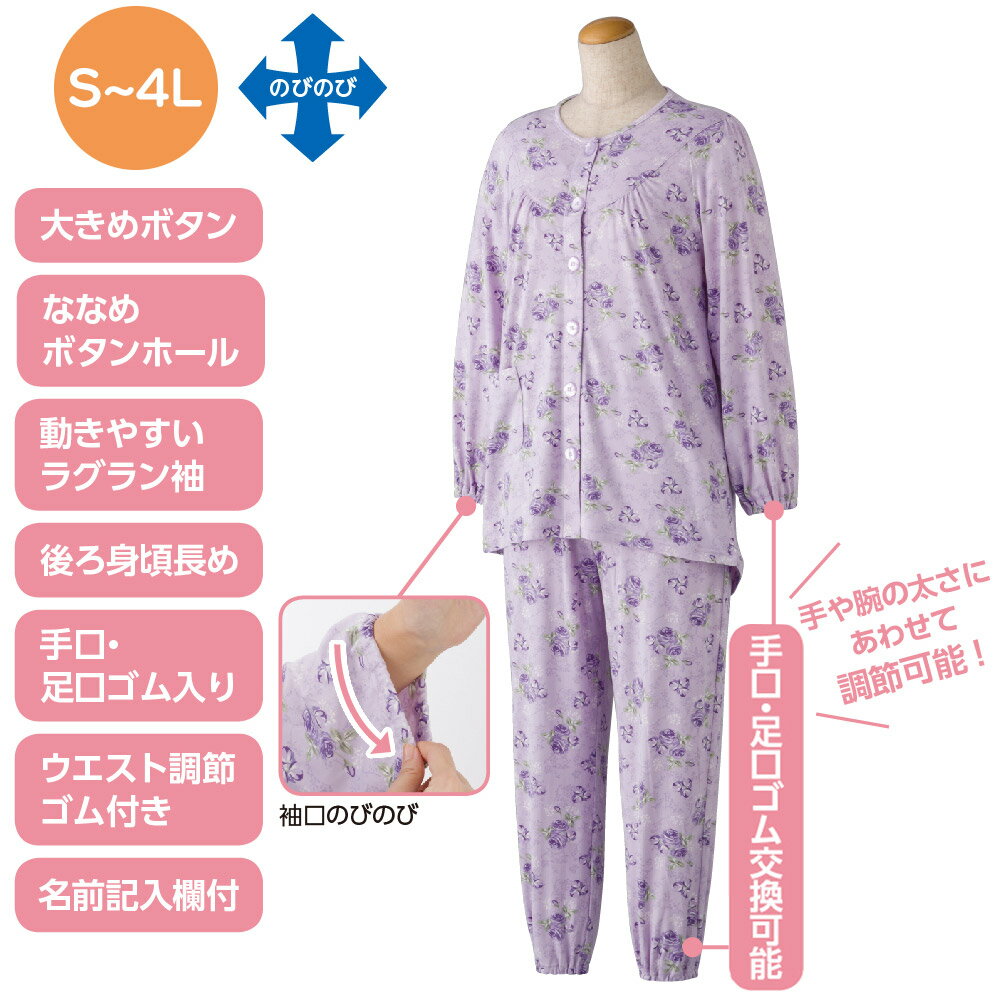 【楽天1位】腕を曲げたまま通せる 乾燥機対応 大きめボタンストレッチパジャマ シニア レディース S M L LL 3L 4Lサイズ プレゼント 入院 入所 介護 クリスマス
