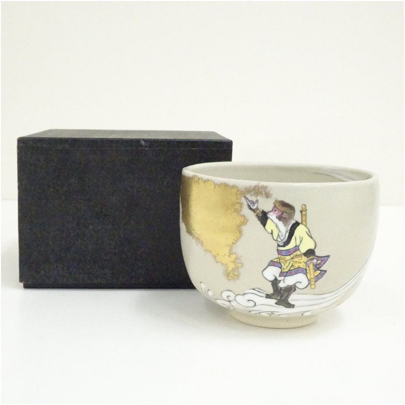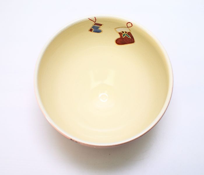 見谷福峰作の抹茶茶碗です。 季節の人気色となっております。 【サイズ】 直径約11.5cm×高さ約8.5cm ※手作り品の為、寸法等に多少の誤差があります。ご了承ください。 【お取扱いについて】 ・土が柔らかでほっこりとした仕上がりの陶器は、使い始めに水をくぐらすと一気に水を吸収し色が変りますが、これは土物の陶器の特性であり不良ではございません。時間がたつと馴染んで、斑点やすじは消えます。 ・陶器の器は使い込むほど美しい器へと変化します。末永くご愛用頂き、経年変化をお楽しみいただければと思います。 ・茶碗を乾いた状態でご使用されますと急激にお茶が素地中に入り黒ずみやカビの原因となります。これらを防ぐ為にご使用される前には必ずたっぷりとお湯に浸け充分に水分を含んだ状態でご使用ください。 ・使用後はよく乾燥させてからご収納ください。 電子レンジ × / 食洗機 × / オーブン ×見谷福峰作 抹茶碗 サンタクロース 京焼は清水焼のこと。古より受け継がれる伝統工芸品です。 清水焼には、土っぽい焼〆の陶器から、染付や色鮮やかな 磁器のものまで清水焼の手法は幅が広く、陶工の数だけ種類があります。 清水焼は長年使い込めば、味わいが出て、想い出も詰まります。 持っていて生活が楽しくなる道具です。 プレゼントを運ぶ可愛らしいサンタクロースが描かれた、季節の抹茶碗です。 化粧箱入りで贈り物にもおすすめです。 サイズ 直径約11.5cm×高さ約8.5cm ※手作り品の為、寸法等に多少の誤差があります。ご了承ください。