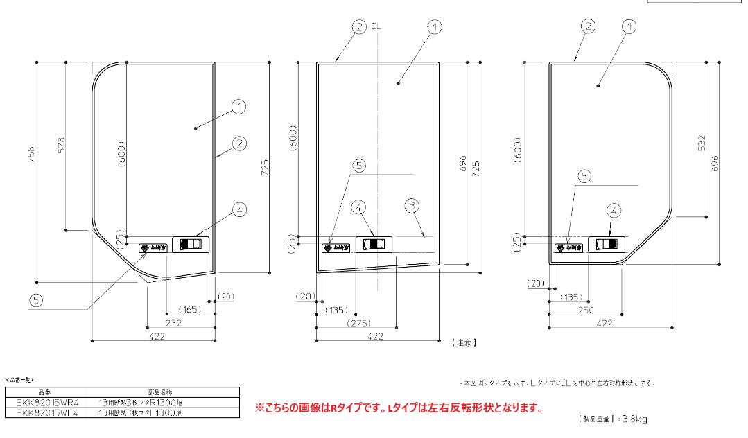 [EKK82015WL4]TOTO 風呂ふた 13用断熱3枚蓋L 1300旭