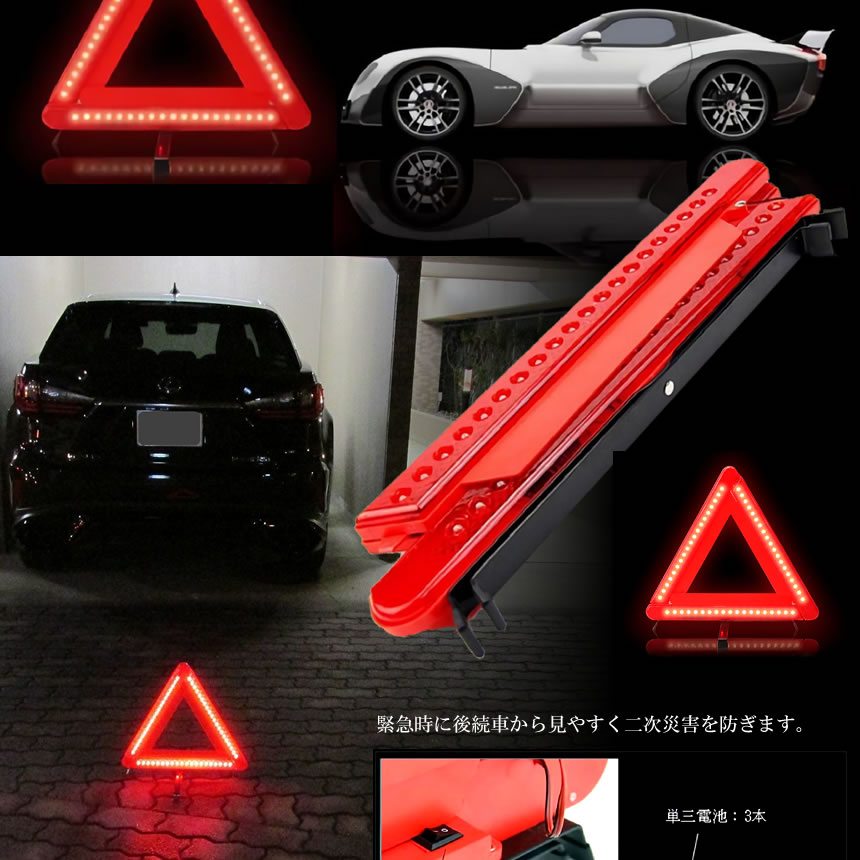 車用 LED カー用品 警告板 反射板 三角表示板 三角停止灯 車用品 緊急時 非常時 事故防止 安全 tecc-keid02