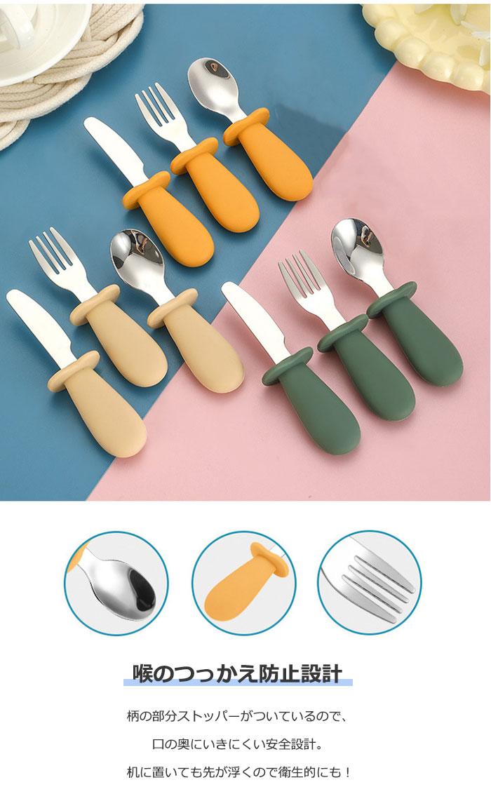 【新着】キッズカトラリー 離乳食 スプーン フォーク ナイフ 食洗機対応 3点 子供用 赤ちゃん キッズ 握りやすい 練習 持ち運び 出産祝い 出産準備 保育園 ベビー プレゼント ベビー食器 子供用食器 お食い初め おしゃれ 子ども食器 育児 子供食器セット シリコン ステンレス
