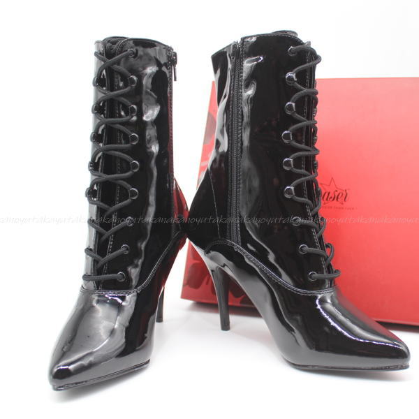 プリーザー ブーツ 黒 10cm/センチ ヒール ショートブーツ 編み上げ ハイヒール ピンヒール セクシー エナメル ブラック ポインテッドトゥ 大きいサイズ 靴 プリーザーヒール Pleaser 公式 VANITY-1020 VAN1020/B【Pleaser/プリーザー 】Pleaser(プリーザー)は1993年の創立以来、世界110ヶ国で販売実績のあるアメリカのシューズメーカーです。プリーザーのヒールはデザイン性に特化しておりハイヒールや厚底靴をメインにグラビア撮影や各種コンテスト、ポールダンス、モデル、ボンテージファッション、キャバ等で愛用されており、美脚効果が優れているのが特徴です。大きいサイズも豊富なので男性のコスプレや女装等にもおススメです。【人気商品】サイハイブーツ|ニーハイブーツ|ショートブーツ|ロングブーツ|エナメルロングブーツ|ピンヒールブーツ|【安心の公式ショップ】当店の商品は米国のPleaser本社との直接取引により輸入しております。ご安心してご利用下さい。商品説明 ■ブランド:PLEASER by PLASER USA ■商品名:ショートブーツ ■色 :ブラック ■素材 :エナメル ■ヒール高 : 4インチ/ 約10cm ■ヒールタイプ :ピンヒール ■トゥデザイン :ポインテッドトゥ/アーモンドトゥ ■その他 :サイドジッパー付き ■ご留意 ・輸入(長距離輸送)品の為、外箱に多少の欠損がある場合があります。 ・製造時に生じる些細な傷等は良品とさせて頂きます。 ・汗や湿気等により靴下等へ色移りする場合があります。 ・化学繊維部等は着用により毛玉が生じる場合があります。 ・色具合/質感が異なって見えている場合があります。 ・仕様変更により細部が異なる場合があります。 ・出荷後の受取り拒否/長期不在によるご返品の場合、送料実費分の請求とさせて頂きます。 【お取り寄せについて】 税関等の諸事情により入荷が1週間程度遅れる場合がございます。 また、メーカーの在庫変動(欠品)により、メーカー発注後に未入荷となる場合がございます。 その場合、確認次第ご連絡の上 キャンセル させて頂く場合がありますのでご了承の程お願い致します。 商品タイトル プリーザー ブーツ 黒 10cm/センチ ヒール ショートブーツ 編み上げ ハイヒール ピンヒール セクシー エナメル ブラック ポインテッドトゥ 大きいサイズ 靴 プリーザーヒール Pleaser 公式 VANITY-1020 VAN1020/B