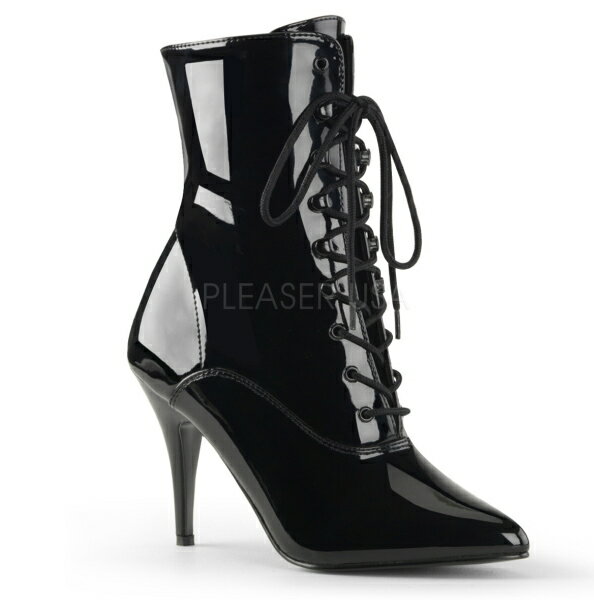 オリジナル特典付 プリーザー ブーツ 黒 10cm/センチ ヒール ショートブーツ 編み上げ ハイヒール ピンヒール セクシー エナメル ブラック ポインテッドトゥ 大きいサイズ 靴 プリーザーヒール Pleaser 公式 VANITY-1020 VAN1020/B