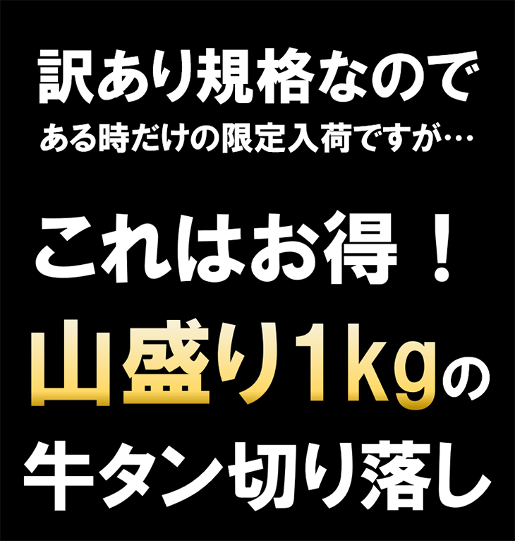 ある時だけの限定入荷!超お得な訳あり牛タン山盛り1kg 仙台牛タンの切り落し・端材をお得にお詰めしました!