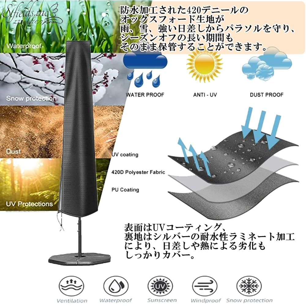 S.fields.inc正規直営店 パラソルカバー 防水 420D ガーデン用 190cm オックスフォード生地 パティオ 傘