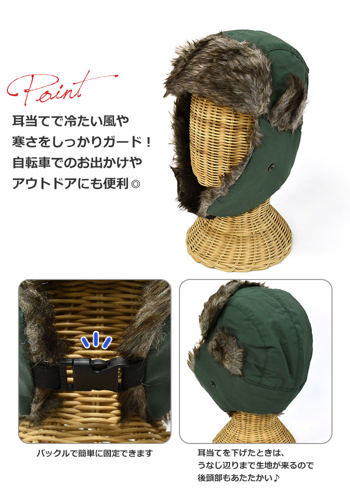 ■ 当商品はゆうパケット(メール便)対応商品です。※送料250円 ☆ ゆうパケットはポスト投函でお届けまでに3日〜5日かかります。 ☆ あす楽や日時指定をご希望の場合は、宅配便での発送となりますので送料が550円となります。 ☆ 代金引換をご希望の場合は、宅配便の送料550円と代引き手数料330円が必要です。 ※宅配便の通常送料について…北海道は770円・沖縄県は2200円かかります。また、離島地域は商品の大きさや地域により通常送料が異なりますので、注文確定後に加算送料のご連絡を行わせていただき、お客様のご了承後の発送となります。 【ご注意】ゆうパケットには紛失・汚損に対する補償がありません。そのようなトラブルがあった場合、当店および運送会社は対応しかねますので、何卒ご了承くださいますようお願い申し上げます。 メーカー希望小売価格はメーカー商品タグに基づいて掲載しています ■ ボリューミーで見た目もあたたかな、季節感たっぷりのフライトハットです。 ■ ふわふわのフェイクファーの耳当てに、内側は中綿入り!おしゃれに防寒できる優秀アイテムです♪ ■ 耳当てを降ろすこともでき、違った雰囲気を楽しめる2way仕様◎ ■ サイズ・・・約62cm ※多少の誤差はご了承ください。 ■ 素材・・・ポリエステル ■ PCモニターの画質や環境により、写真と実物の色味が多少異なる場合がございますのでご了承ください。