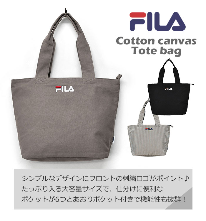 FILA フィラ キャンバス トートバッグ メンズ 大きめ ファスナー付き A4 通勤 通学 肩掛け 無地 仕切り/ 片あおり /ポケット 多い たくさん 大きい 大容量 シンプル 軽い 軽量 おしゃれ オシャレ 大人 肩がけ 手提げ 旅行 帆布 ブランド 刺繍 ファスナー チャック バッグ/ p