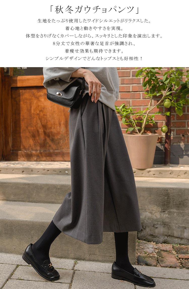 ガウチョパンツ 秋冬 ワイドパンツ 冬 ウール調 レディース ボトムス パンツ ワイド ラシャ 暖かい 八分丈 七分丈 スカーチョ フレアパンツ ゆったり 大きいサイズ 体型カバー タック ウエストゴム 大人 フォーマル 美脚 黒 グレー 無地 オフィスカジュアル 上品見え 大人