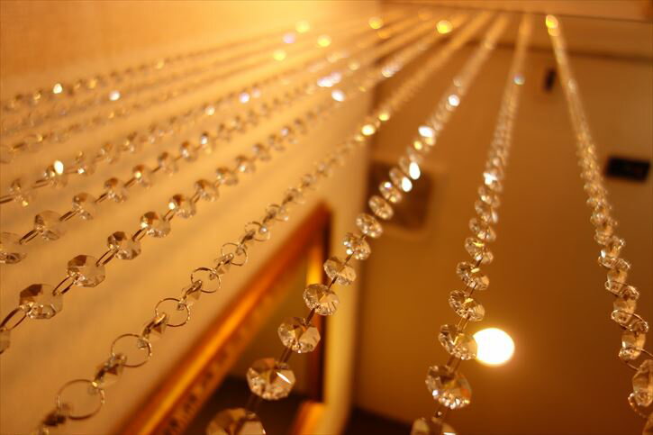 ★連結金具はこちら★ ★エンドパーツはこちら★ ★クリスタルカーテンはこちら★ 間仕切りやシャンデリアのカスタマイズに♪ 安価なアクリル製とは違い、ガラス製クリスタルカーテンは輝きが違います! 連結パーツの取り外しによって簡単に長さを調整できます。 2本連結して2mに延長なんてことも簡単にできます。 このクリスタルチェーンは、クリスタルガラスの輝きを活かしたデザインが特徴です。間仕切りやのれんとしてだけでなく、サンキャッチャーやシャンデリアの代用品としても使用できる多機能性を持っています。有名メイカーの代用としても遜色ないクオリティで、業務用パーツやDIYキットとしてもおすすめです。 光を受けるとキラキラと輝くクリスタルチェーンは、どんな空間にも華やかさをもたらします。ビーズの連なりが織りなす美しい光のプレイは、視覚的にも楽しむことができ、特に光が差し込む窓辺に設置することで、その美しさがより際立ちます。 また、修理用のパーツとしても利用可能で、カスタマイズが容易なため、お手持ちのインテリアに合わせたアレンジが可能です。カラーバリエーションには、クラシックなクリアの他に、ライトシャムなどの色彩もあり、お部屋のテーマや色合いに合わせて選べます。 このビーズカーテンは、美しさと実用性を兼ね備え、どんな空間も特別な場所に変える力を持っています。お部屋のアクセントや、特別な日のデコレーションにも最適です。 【取り付け方法】 カーテンレールに取り付け。 ホッチキスやダッカーを使って直接天井に取り付けることもできます。 ・長さ:0.95m〜1m ・1本あたりのガラスパーツ数:44個〜46個 ・ガラスパーツ直径:14mm ・素材:ガラス ・色:クリスタル 【ご注意(免責)> 必ずお読み下さい】 ・長さ(1本あたりのガラスパーツ数)に誤差がある場合があります。 ・ねじれがが発生する事がございます。 ・欠けや傷があります。 ・業務用の為簡易包装となっております。 ・生産時期によってカットや厚さが異なる事が御座います。 ・メール便での発送をご希望の場合、故障・紛失・初期不良などの保証が出来かねますのでご了承下さい。 ・保証有りをご希望のお客様は宅配便を選択してください。 ・初期不良の交換は商品到着より一週間以内。(宅配便のみ保証有り) ・お客様都合による返品はお受けできませんので御了承ください ・商品の画像の色はブラウザの環境によって異なる場合があります。 ★連結金具はこちら★ ★エンドパーツはこちら★ ★クリスタルカーテンはこちら★