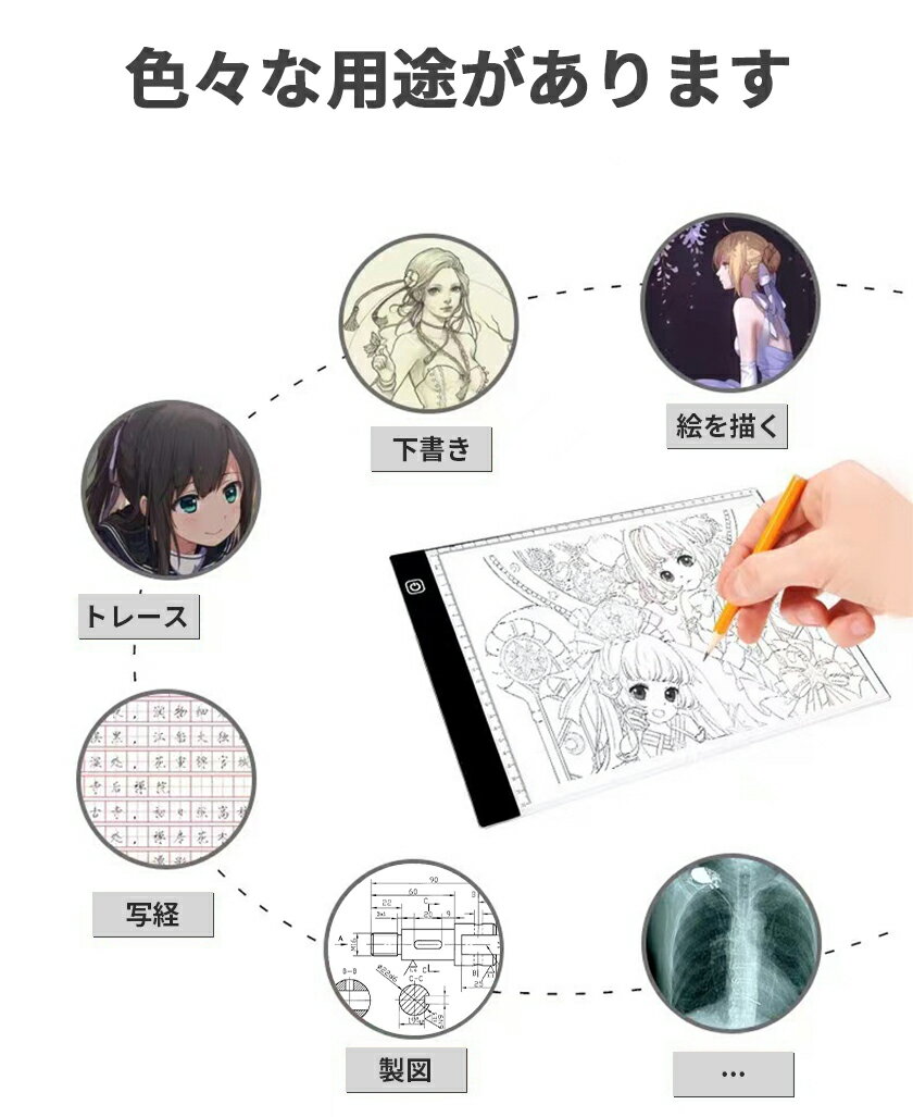 トレース台 薄型 LED A4 A3 三階段調光 無階段調光 USB給電 コード付き ルーラー 目盛り 色つけ トレーシング イラスト 製図 アニメ コミック キャラクター LED ダイヤモンドアート トレス台 トレース プレゼント ブラック ホワイト ブルー ライトテーブル 海外通販