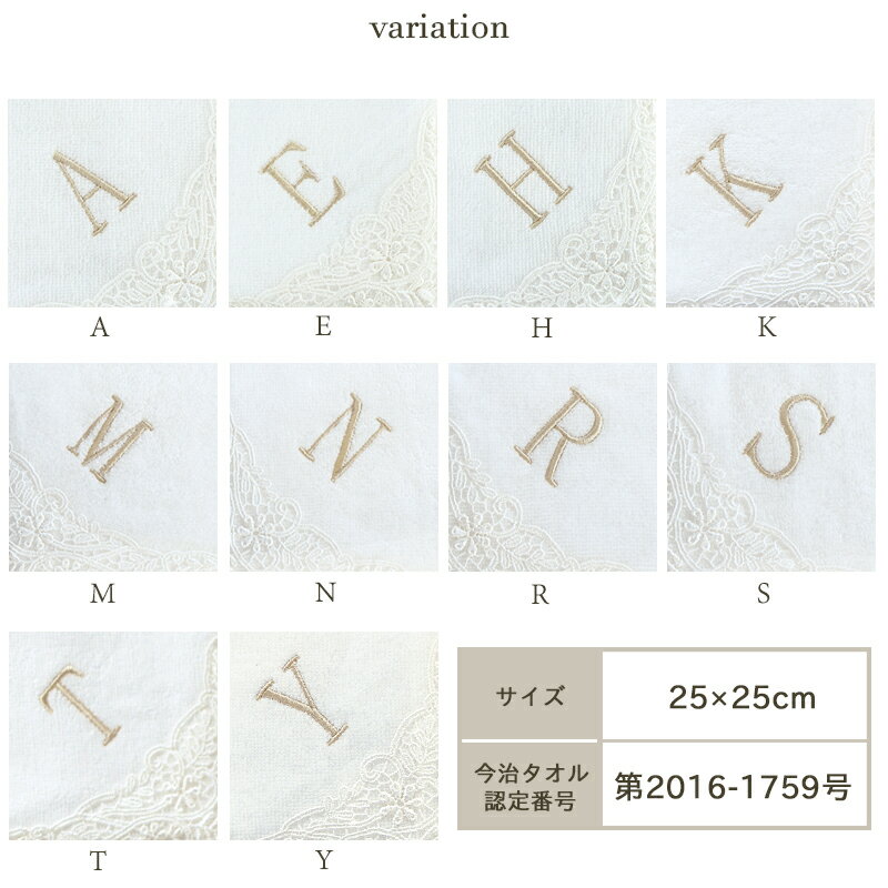 今治産 イニシャル レース ハンカチタオル レディース 今治タオル ハンカチ アルファベット 日本製 記念日 誕生日 贈り物 出産 内祝い ホワイトデー お返し おしゃれ ハンドタオル A E H K M N R S T Y 25×25cm お友達 プレゼント ギフト (cr-ih-1759m)【送料200】