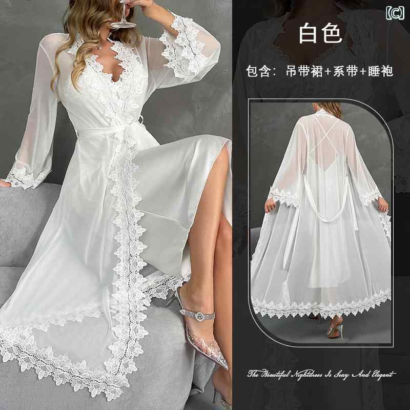 パジャマ レディース ランジェリー セット 接触冷感 Vネック キャミソール ローブ 3点セット ポリエステル 薄手 春夏 秋冬 部屋着 寝間着 リラックス ウェア ホワイト