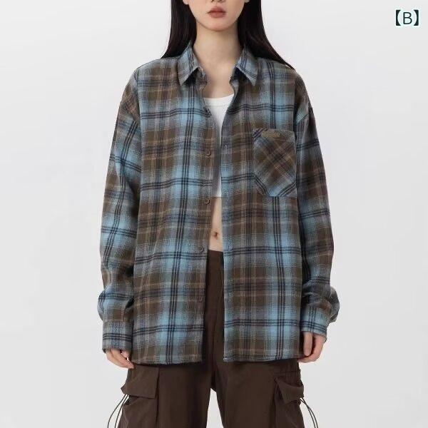 ・素材: ポリエステル・柄: 格子・スタイル: カーディガン・袖丈: 長袖・フィット: ゆったり・着丈: 普通 (50cm以上65cm以下)・ネックライン: ポロ襟・袖のタイプ: レギュラー袖・ディテール: ダメージ加工・カラー: グリーン、ブラウン・サイズ: S、M、L、XL、XXL・系統: フェミニン・フロント: シングルブレスト・主素材含有量: 95%以上・スタイル: スクールガール・製品カテゴリ: シャツ