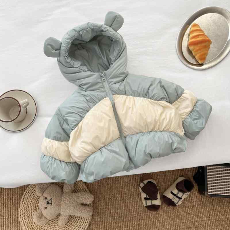 子供服 アウター 子供服 韓国風 男の子 熊耳フード付き ダウンジャケット ベビー服 防寒着 秋冬 73 80 90 100 110cm グリーン カーキ