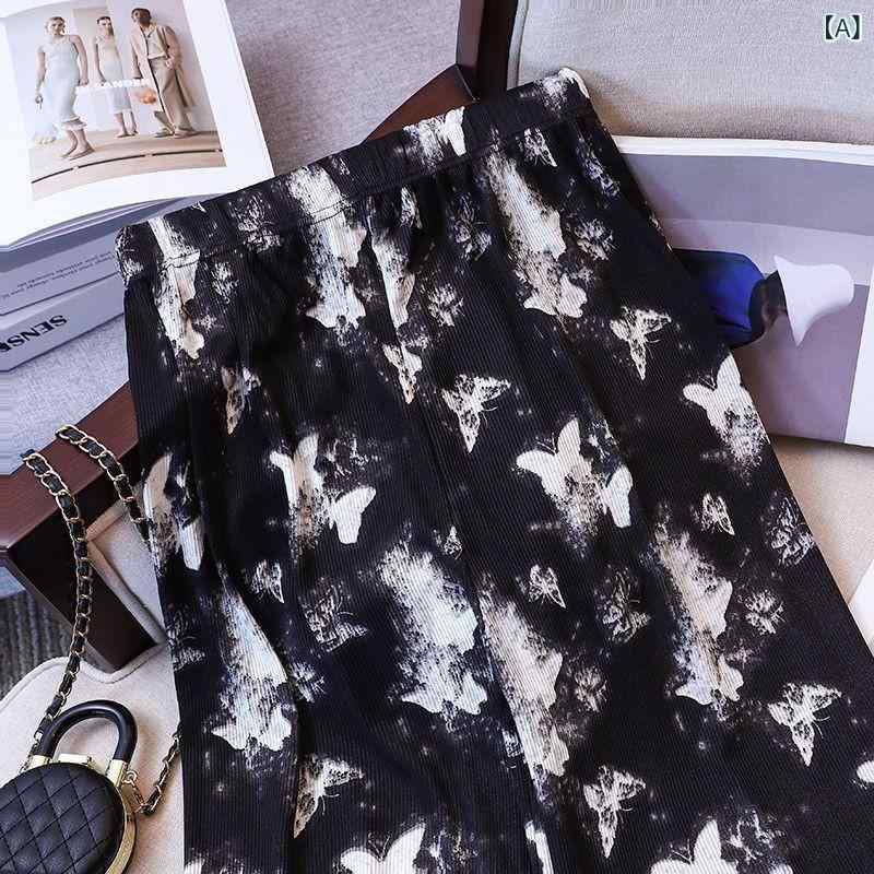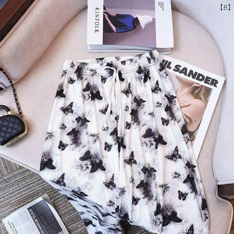 パンツ レディース バタフライプリント ワイドレッグパンツ ゆったり ストレートパンツ ハイウエスト ドレープ感 リラックスパンツ カジュアルパンツ ブラック 黒 ホワイト 白 竹柄 ピンク系 グリーン系 ブルー系 薄手 ポリエステル レトロ エレガント
