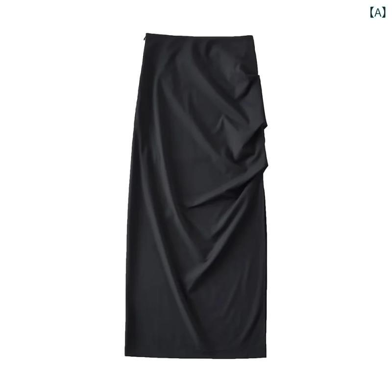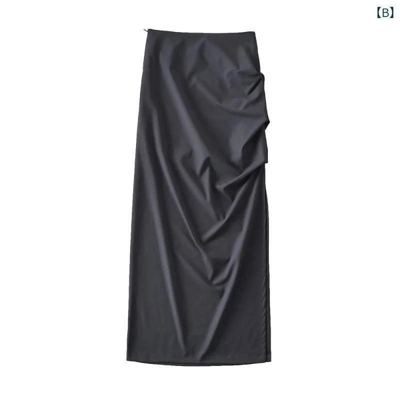 スカート レディース 春夏 高腰 アシンメトリー ギャザー サイドスリット入り ロングスカート タイトスカート マーメイドスカート ポリエステル ブラック グレー ベージュ 伸縮性なし セクシー ストリート