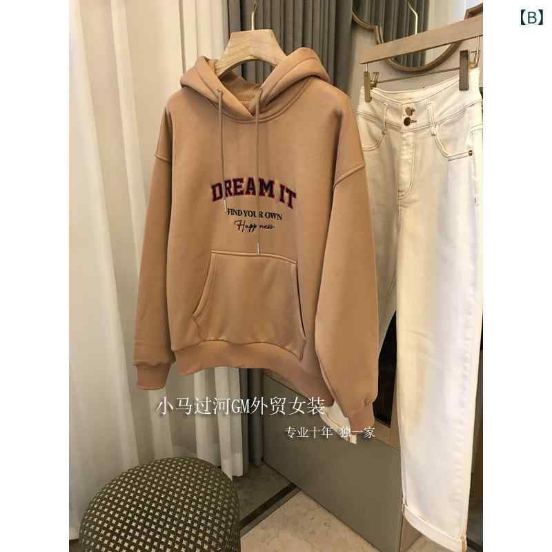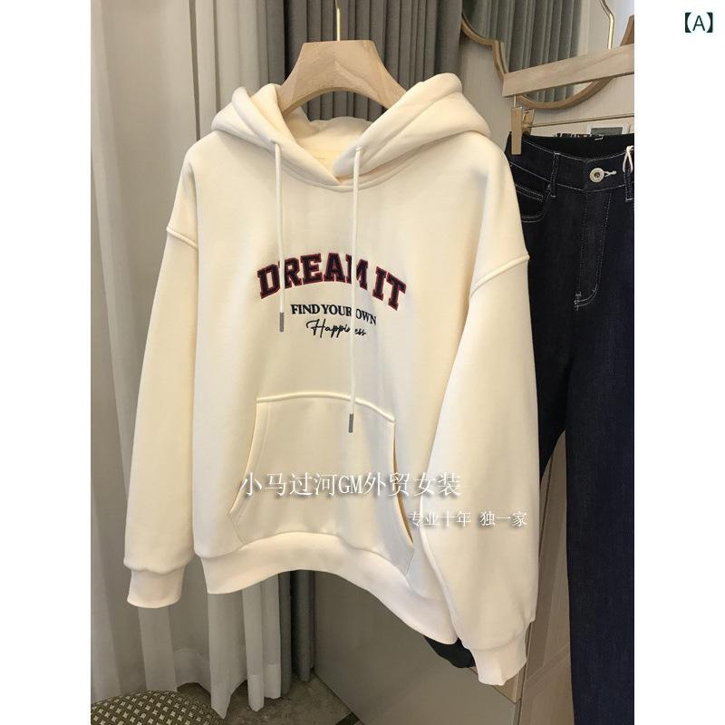 パーカー レディース 秋冬 裏起毛 厚手 フード付き トレーナー 学生 ゆったり かわいい 普段使い 部屋着 455 米白色 棕駝色 藏青色 M L XL 2XL