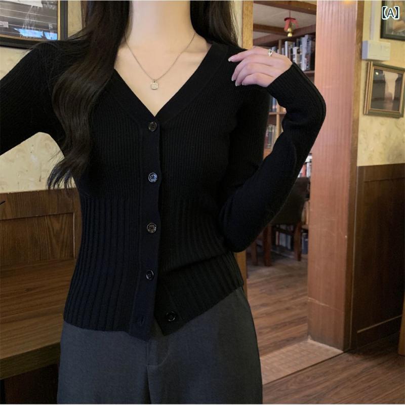 ニットカーディガン レディース Vネック 薄手 トップス 長袖 ショート丈 伸縮性 無地 着痩せ 韓国風 日常 普段使い オフィスカジュアル 接触冷感