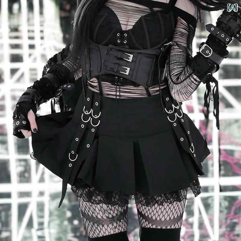 スカート レディース ゴシック 百褶スカート ミニスカート ストリート 普段使い ブラック ポリエステル 金属環 モード系 スタイル