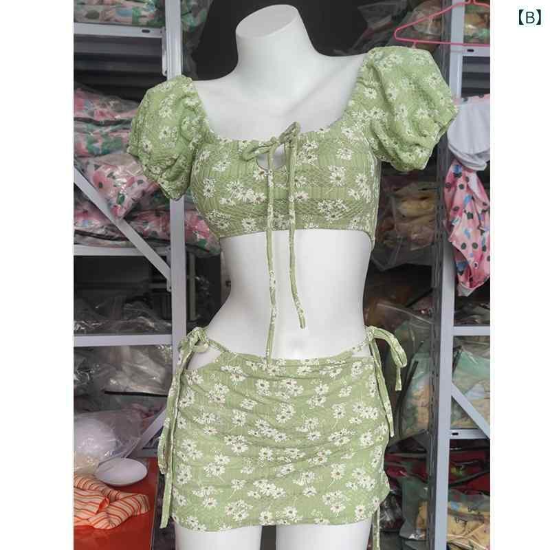 水着 レディース ビキニ 3点セット 小花柄 セクシー かわいい リゾート 海 接触冷感 高弾性