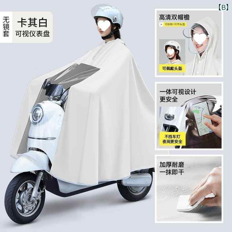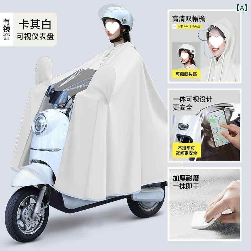 レインコート レディース バイク用 電気自動車用 厚手 ロング丈 全身 防水 防雨 米白 青 ピンク系 オレンジ 透明 白