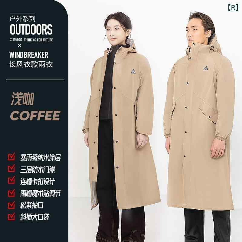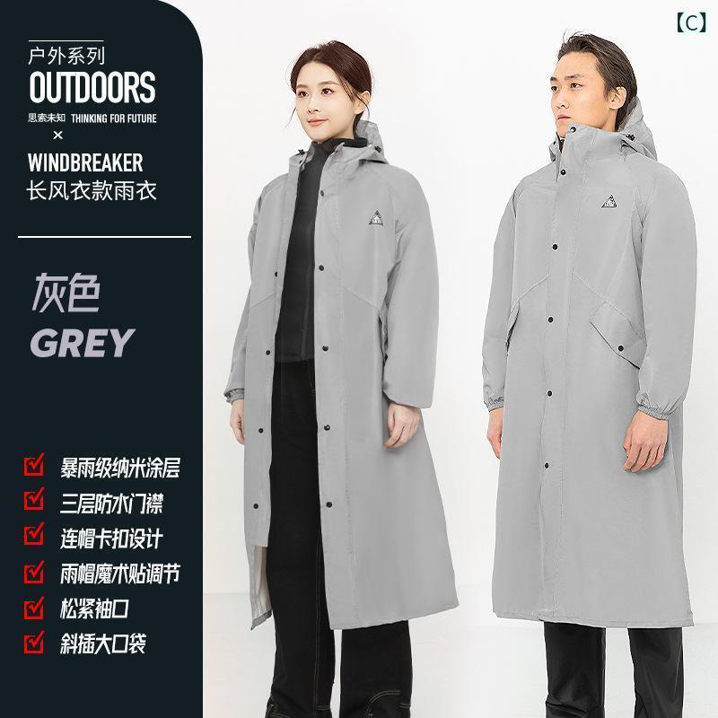 レインコート 男性用 女性用 大人用 バイク用 自転車用 ロング丈 全身 防水 撥水 反射材 ベージュ カーキ ブルー グレー