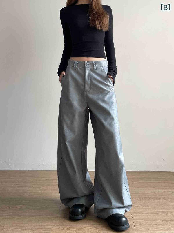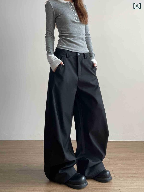パンツ レディース アメリカンスタイル レトロ テーパードパンツ 灰色 黒色 ポリエステル 直線 ゆったり カジュアル スラックス
