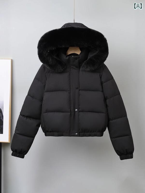 ジャケット レディース 韓国風 ショート丈 中綿入り あったか 毛襟付き ブルゾン アウター 防寒着 秋冬 ブラック コーヒー色 ブルーグレー カーキ ホワイト M L XL XXL