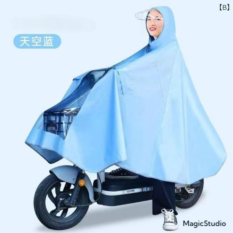 レインコート レディース バイク用 ポンチョ 厚手 防水 防風 カッパ 自転車 原付 スクーター 電動アシスト自転車 撥水 ツバ付き ダブルバイザー 収納袋付き 全身 おしゃれ かわいい