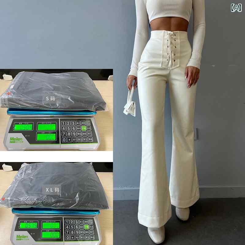 パンツ レディース 秋冬 高腰 微フレアパンツ フェイクレザーパンツ 黒 白 緑 セクシー スタイル 普段使い