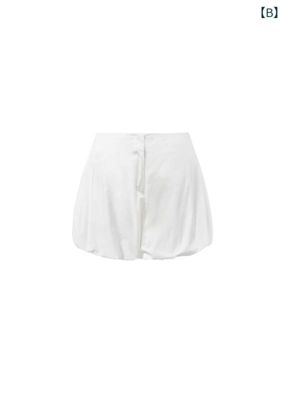 ショートパンツ レディース ハーフパンツ 綿混紡 無地 炭グレー 白 春夏 高腰 ゆったり 褶 곡 디자인