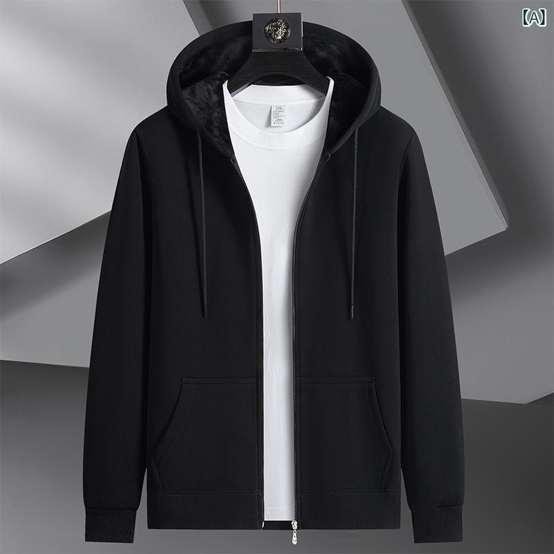 パーカー メンズ 男性用 春秋 加絨 裏起毛 長袖 ジップアップ スウェット 部屋着 ルームウェア 普段使い カジュアル 無地 黒 ブラック グレー
