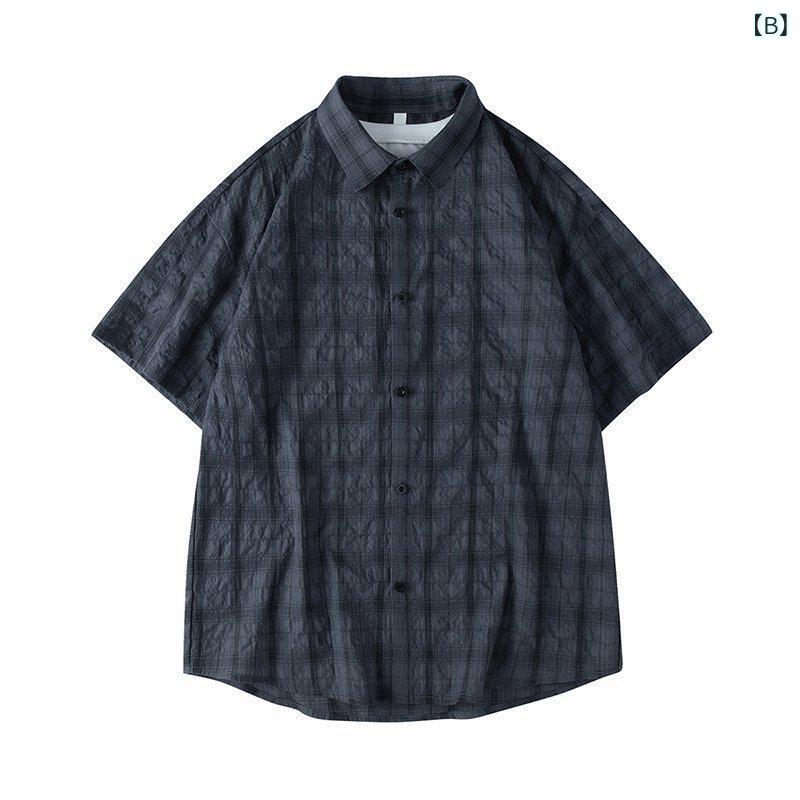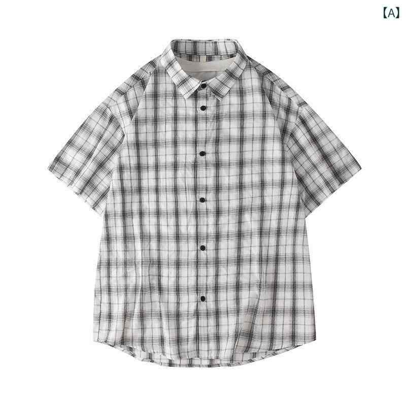 シャツ 男性用 半袖 薄手 通気性 格子柄 カジュアルシャツ 普段使い リラックス ルームウェア トップス
