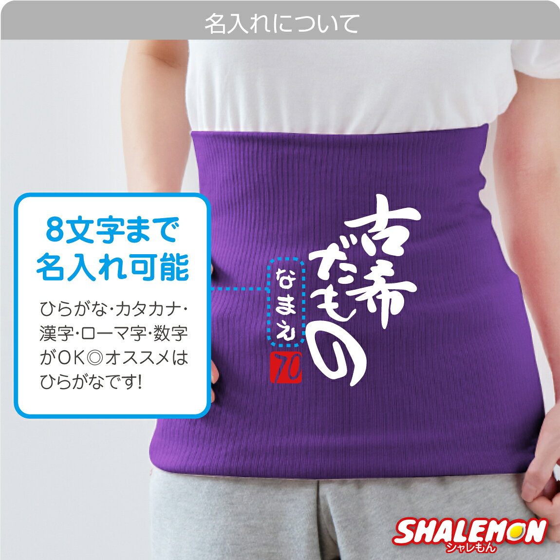 古希祝い 名入れ 腹巻 ( はらまき )( 古希だもの )( 70 ) 日本製 防寒インナー 父 母 古希 紫 男性 女性 ちゃんちゃんこ の代わり 誕生日 70歳 フリーサイズ パープル お祝 長寿 冷え性 ダイエット 寒さ対策 冷え防止 プレゼント こきだもの しゃれもん