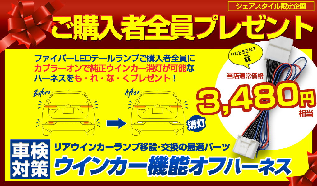 \車検対策に最適パーツ/ \今ならもれなくプレゼント/ ハリアー80系 ファイバーLEDテールランプ 適合車種 商品番号 ハリアー80系 MXUA80 MXUA85年式:R2.6〜 ハリアー80系 AXUH80 AXUH85年式:R2.6〜ガソリン車&ハイブリッド車対応 ※寒冷地仕様車(リアフォグ装着車)取り付け確認済みです。 to-har08-li03002 材質 カラー×ウインカータイプ LED レンズ ABS樹脂 スモーク/レッド/クリアシーケンシャルウインカー/点滅ウインカー セット内容 専用設計 本体4P 配線一式 エレクトロタップ×2個 タイラップ×4本 ハリアー 80系 専用 ガソリン車 ハイブリッド車対応 保証期間 【1年保証】・・・詳しくは商品に同封してあります商品保証書もしくはご利用ガイドをご確認ください。 注意事項 ※2022年10月以降の一部改良車はウインカー機能オフハーネスを同時装着しないと正常動作いたしません。 ※使用中にできた傷やひび割れなどは保証対象外となります。 ※お取り付けは、自己責任にて作業を行って下さい。ウインカー配線の結線作業が必要です。 ※寒冷地仕様車(リアフォグ装着車)取り付け確認済みです。※純正状態を想定して制作しているため、他アイテムと併用した場合予期せぬ動作、誤作動の原因となります。(例:テール4灯化キットなど)※オープニングアクション機能はスモール連動です。日中などオートライト非点灯の際は動作しません。※オープニングアクション機能のON/OFF設定変更する際は連続で行わないでください。※連続でON/OFF設定変更をすると、リアゲート側とバックランプ側で点灯機能が互い違いにずれる場合があります。※万が一機能がずれた場合は、正常な状態に戻るまでオープニングアクション機能のON/OFFを繰り返してください。※洗車や天候や気温が変化する環境でご使用された場合、レンズ内側に曇りや水滴が発生することがございます。 これはテールランプ内の空気の出入りを妨げないよう完全密閉されていないために起こる現象で不具合ではございません。 気になる場合はご自身でのコーキング処理をお願いいたします。 上記事象での返品・返金・交換は一切できませんので予めご確認ください。※アルコールを含む洗剤などを使用して洗車すると、レンズが割れる恐れがあるため使用しないでください。アルコール洗剤を使用でのレンズ割れの場合、交換対応は出来かねますのでご注意ください。※車検については車検官、地域により判断基準が異なります。車検場、ディーラー、整備工場などへご確認ください。※車両適合情報は本製品発売時のものになります。その後の車両側の仕様変更や改修によっては正常に動作/適合しない場合がありますのでご注意ください。※グレードやオプション等により装着できないことがございます。必ずお客様のお車を確認の上ご購入ください。※社外品につき小傷等がある場合がございますが、使用に支障がない限り交換、返品はいたしません。※色合い、明るさについて、人それぞれの感覚ですので、返品交換はお受けできません。※本製品を使用したことによる直接、間接的に生じた事故、損害、破損についての責任は弊社は一切負いません。※商品は予告なく仕様変更もしくは販売終了している場合がございますのであらかじめご了承ください。※国外への配送はEMSでの発送です。ご注文後、弊社よりメールにて別途送料などをお知らせいたします。※本商品は2023年6月12日カラーバリエーションを追加しました。
