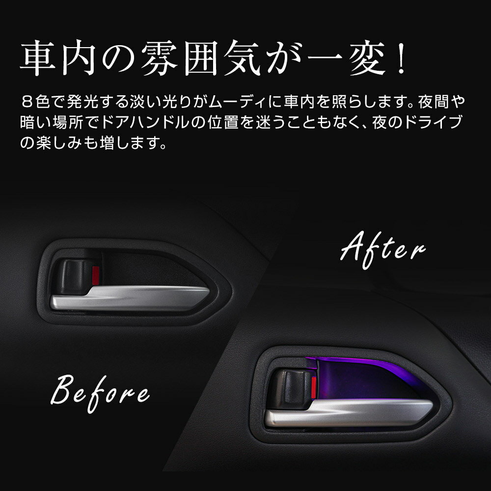 ノア ヴォクシー 90系 8色切り替え可能インナードアランプ 2p 適合車種 商品番号 ノア ヴォクシー 90系 ZWR9#W MZRA9#W R4.1〜 to-novo07-li1103 材質 カラー 合成樹脂+LED 8色切替(ブルー・パープル・ピンク・オレンジ・イエロー・グリーン・レッド・ライトブルー) セット内容 装着方法 本体2p+カプラー配線2p+内張りはがし+取扱説明書 カプラーオンで取付 注意事項 ※ウィンドウスイッチパネルを外しての配線作業が必要となります。※使用上や環境によりLEDの寿命が短くなる場合がございます。※色合い、明るさについて、人それぞれの感覚ですので、返品交換はお受けできません。※グレード・追加オプション・エアロパーツ・社外品等を装着している車によっては形状が合わない場合があります。お乗りのお車と商品画像を見比べて合うことをご確認の上、ご購入をお願いいたします。※車両適合情報は本製品発売時のものになります。その後の車両側の仕様変更や改修によっては正常に動作/適合しない場合がありますのでご注意ください。※取り付けの際の工賃等の請求は一切受け付けません。※お取り付けは、自己責任にて、作業を行って下さい。お客様責任による破損での対応は受付できません。※必ずフィッティング確認を行ってから取り付けてください。※社外品につき小傷等がある場合がございますが、使用に支障がない限り交換、返品はいたしません。※本製品を使用したことによる直接、間接的に生じた事故、損害、破損についての責任は弊社は一切負いません。※モニターの環境により商品の色合いや素材感などが異なる場合がございます。※商品は予告なく仕様変更もしくは販売終了している場合がございますのであらかじめご了承ください。※国外への配送はEMSでの発送です。ご注文後、弊社よりメールにて別途送料などをお知らせいたします。 保証期間 【30日保証】・・・30日以内の初期不良に対応いたします。詳しくは商品に同封してあります商品保証書もしくはご利用ガイドをご確認ください。