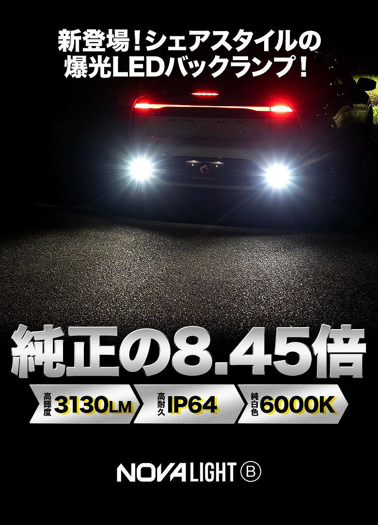 [最大P34倍] プリウス 60系 バックランプ ノヴァライトBタイプ 2個セット LED ライト ランプ カスタム パーツ ledバルブ 高輝度 ホワイト 両側 6260LM 爆光 6000K ZVW60 MXWH60 トヨタ TOYOTA 車検対応