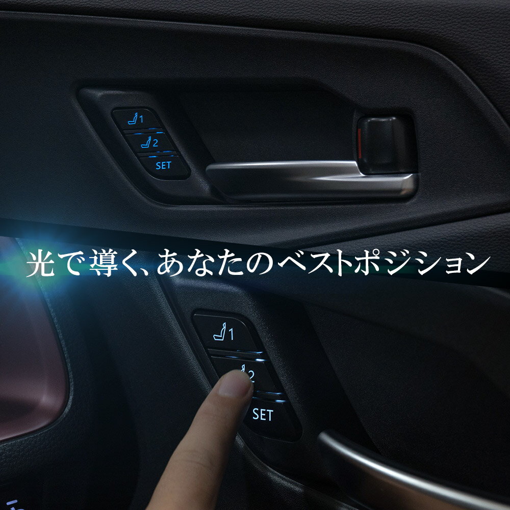 プリウス 60系 MXWH ZVW シートポジションメモリー用LEDスイッチ適合車種商品番号プリウス MXWH ZVW 60系 R5.1〜※シートポジションメモリー搭載車のみ対応to-pri13-li09005材質カラーABS樹脂ブラックセット内容装着方法本体1p+エレクトロタップ純正交換注意事項※使用上や環境によりLEDの寿命が短くなる場合がございます。※色合い、明るさについて、人それぞれの感覚ですので、返品交換はお受けできません。※グレード・追加オプション・エアロパーツ・社外品等を装着している車によっては形状が合わない場合があります。お乗りのお車と商品画像を見比べて合うことをご確認の上、ご購入をお願いいたします。※車両適合情報は本製品発売時のものになります。その後の車両側の仕様変更や改修によっては正常に動作/適合しない場合がありますのでご注意ください。※取り付けの際の工賃等の請求は一切受け付けません。※お取り付けは、自己責任にて、作業を行って下さい。お客様責任による破損での対応は受付できません。※必ずフィッティング確認を行ってから取り付けてください。※社外品につき小傷等がある場合がございますが、使用に支障がない限り交換、返品はいたしません。※本製品を使用したことによる直接、間接的に生じた事故、損害、破損についての責任は弊社は一切負いません。※モニターの環境により商品の色合いや素材感などが異なる場合がございます。※商品は予告なく仕様変更もしくは販売終了している場合がございますのであらかじめご了承ください。※国外への配送はEMSでの発送です。ご注文後、弊社よりメールにて別途送料などをお知らせいたします。 保証期間 【30日保証】・・・30日以内の初期不良に対応いたします。詳しくは商品に同封してあります商品保証書もしくはご利用ガイドをご確認ください。 プリウス60系専用のシートポジションメモリー用LEDスイッチは、夜間でもボタン位置が分かるように設計されています。青と白の発光が選べる配線選択式で、車内に溶け込む上品な発光が特徴です。純正のような仕上がりで、車内の印象を引き締めます。視認性を高めるだけでなく、エレガントな雰囲気を演出し、ドライブをより快適にします。