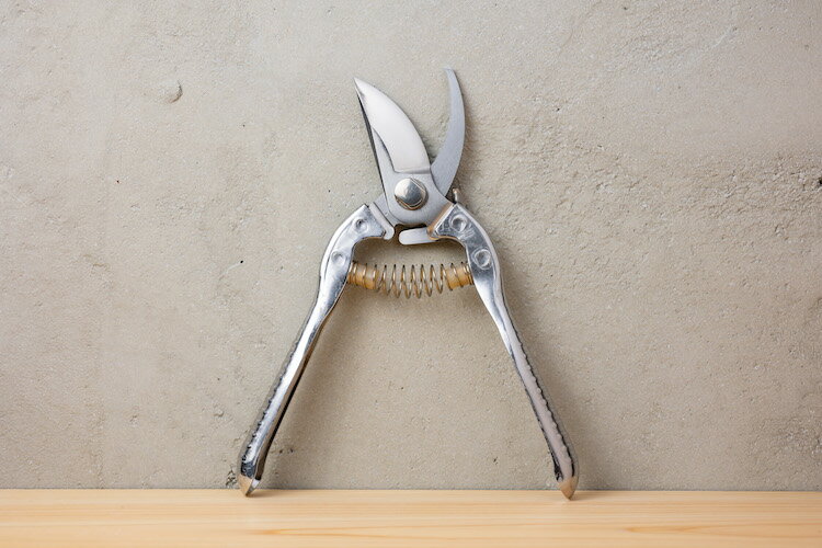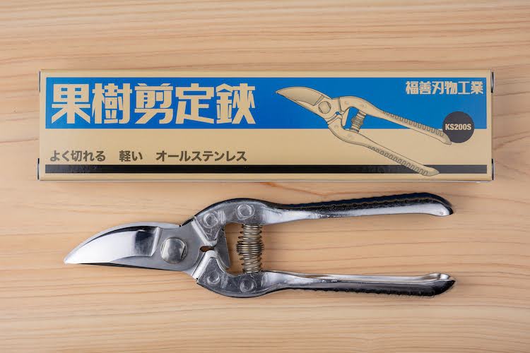 商品情報 名称 果樹剪定鋏 素材・材質 高級刃物用ステンレス鋼 寸法 ◆KS200S 全長:195mm ※商品名は200mmですが、実際のサイズは195mmです刃の開き:35〜40mm(最大50mm)ハンドルの開き:115〜130mm ◆KS180S 全長:180mm刃の開き:35〜40mm(最大50mm)ハンドルの開き:110〜120mm 重量 ◆KS200S:160g ◆KS180S:150g 販売元 福善刃物工業株式会社 配送日時指定について メール便のため、配送日時指定ができません。 その他 当商品は他店舗・実店舗での在庫共有商品となります。そのため売り違いによる在庫切れが発生する場合、発送までお日にちをいただく場合がございます。予めご了承のうえ、ご注文くださいませ。上記の点が発生した場合はご連絡させていただきます。きっかけはお客様からの依頼 福善刃物工業が剪定鋏の開発を手掛けるようになったのは今から19年ほど前のこと。あるお客様からの「他社よりもよく切れる剪定用のハサミが欲しい。」という依頼からはじまりました。 それまでは機械器具用の刃物を専門としていたため、剪定鋏を作るノウハウがなくゼロから作成を開始。ねじの締め具合やハンドルの外れなど、不具合が出ればその都度見直し、製品が作られていきました。 ねじは緩みすぎれば外れてしまうし、締めすぎれば刃が割れてしまう、その加減がもっとも難しいといいます。作り直してはお客様に試してもらい、何度も改良を重ねながら今の製品にたどり着きました。 お客様の求める「よく切れる」とは 刃物を表現する言葉に“切れ味”という言葉があります。 「味は人によって感じ方が違うもの。これは刃物の“切る”という感覚にも通ずるもので、“切れ味”は使い手それぞれに感じ方があると思います。」と、代表の福久さんは言います。 切れ味を良くするためには刃をより薄くし、なおかつ耐久性があり長く使えるものにするには、ある程度の強度が必要…このバランスをとることが鋏作りの難しさでもあります。 剪定鋏も採花鋏も長年使いこんで、その切れ味とともに手に馴染んでいくもの。だからこそ、使い手の負担を少しでも楽にさせたい、そんな福久さんの想いが感じられます。 果樹剪定鋏 全長180mm、(右)果樹剪定鋏 全長200mm オールステンレスの刃物 従来の剪定・採花鋏は鋼のものが主流。しかし、鋼は錆びやすく、樹液のつきやすい果樹剪定や採花ではお手入れが大変。福善刃物工業の鋏は高級刃物用ステンレス鋼を使用しハンドルやネジ・バネに至るまでオールステンレス素材です。ステンレス鋼の性能を引き出す加工を行う事で、錆びに強く切れ味が長く持ち、お手入れしやすいのも特徴です。 “病みつきになる”使い心地 実際にこの鋏を使用しているお客様の中には、一度使ったらやめられない、という方も多くいるそう。花屋で使用するため毎年注文されるというリピーターのお客様も。刃が丈夫なため、刃を研ぐ回数が少なく済むのも嬉しいポイント。 今まで1日に何度も何本も研いでいたところ、この鋏に変えることで研ぐ回数が大幅に減った、という果樹農家様の声もいただいたそうです。もちろん使い勝手の良さは抜群で、一般の方にも便利にお使いいただけます。 (上)果樹剪定鋏 全長180mm、(中)果樹剪定鋏 全長200mm、(下)園芸採花鋏 全長215mm 用途別に、果樹用剪定鋏は大きさが大小2種類。小さい方は女性の方や、込み入った枝を切る際に役立ちます。大きい方は力が入れやすいので、女性やお年寄りの方でも太い枝を簡単に切ることができます。 園芸採花鋏は花の茎や細い木の枝など、断面をきれいに切ることができるため、花の茎が潰れず、水の吸い上げがよくなります。花を長く楽しむことができるのも嬉しいですね。ガーデニングや家庭菜園にも最適です。 手に取るとわかる使い手への優しさ 実際に鋏を触らせていただきました。持ち上げた瞬間、まずその軽さに驚きました。鋏の中心にあるストッパーは指一本で開閉でき、片手での作業もはかどります。ハンドルは軽く簡単に握ることができ、ハンドルを動かすバネの中にはウレタンゴム製のクッションがあり、握った時の衝撃もやさしく手にひびきません。 枝を切ってみると、気持ちのいいほど刃がスッと枝に入り、余分な力をかけることなく簡単に切ることができました。そのきれいな断面に、病みつきになる方の気持ちがよくわかります。 丈夫で長持ちするため、買い替えが減ってしまうのでは?思わずそんなことが気になってしまいましたが、「お客様の負担が減るなら」と笑顔で話す福久さん。使い手の気持ちを何よりも大切に考えて作られた鋏。 驚きの切れ味と軽さ、優しい使い心地を感じてみてください。 レポート:村瀬 恵里佳 フォト:小池 輝 編集協力:谷 亜由子 (2021年3月1日掲載) 2