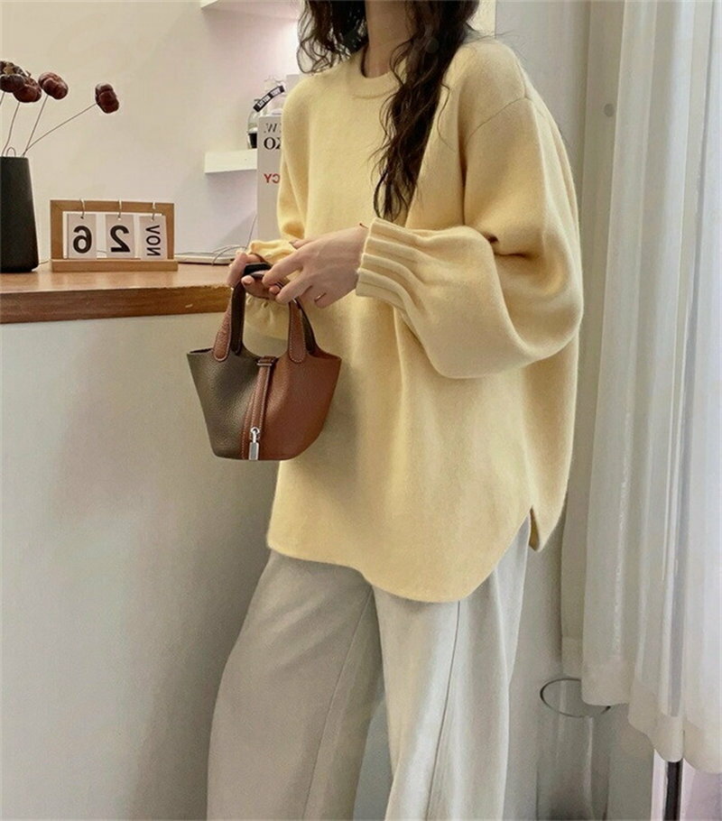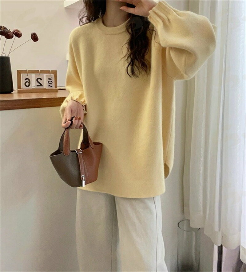 ニット セーター クルーネック ニット チュニック レディース 長袖 秋 冬 ニット プルオーバー インナー セーター トップス ギャザー袖 ニットソー ニットウェア 無地 きれいめ ゆったり 体型カバー シンプル おしゃれ 大きいサイズ カジュアル 大人 可愛い 送料無料