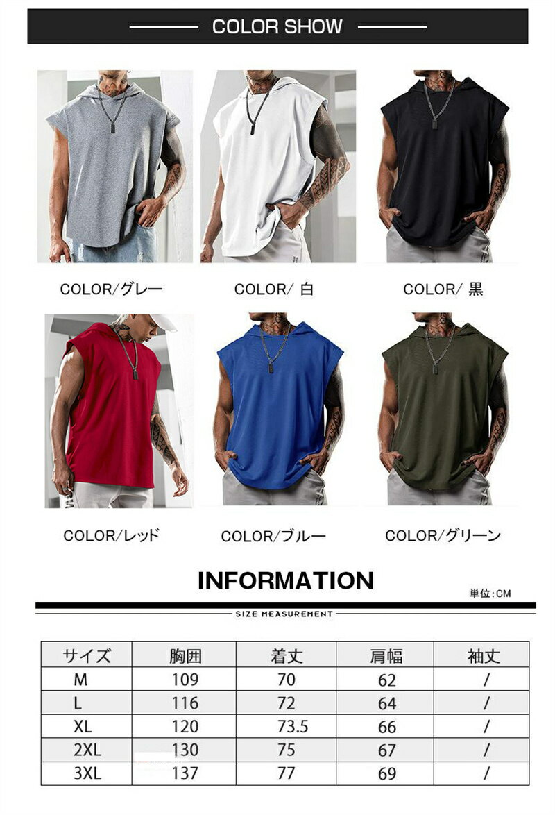 送料無料 タンクトップ メンズ ノースリーブ パーカー 無地 袖なしパーカー プルオーバーパーカー スポーツウェア カジュアル トレーニング 無地パーカー ジムウェア 袖なし フード付き タンク 楽天海外通販